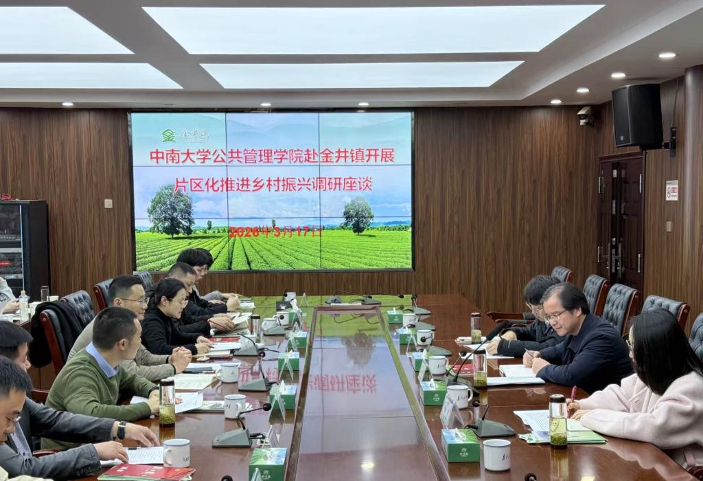 2026年3月17日,中南大学乡村治理研究中心主任许源源教授率队,携中南大学公共管理学院胡盼老师、徐洁老师及博士、硕士研究生共19人,赴长沙县金井镇开展专题调研。本次调研旨在全面了解金井镇“十四五”时期乡村全面振兴的推进情况,梳理“十五五”时期的重点任务,并重点考察其以片区化建设推动乡村振兴的实践经验。