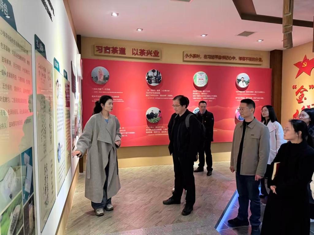 调研组一行首先前往金井镇金茶花园片区进行实地考察。在金井茶文化交流展示中心,调研组详细了解了金井茶产业的发展历程、种植加工工艺及产品系列。透过展陈布局,调研团队了解到当地以茶为媒、推动一二三产业深度融合的发展格局,以及在家园共建、产业共链、文化共融、人才共育、富裕共行“五共”发展模式方面的探索实践。在花园片区村民活动中心,调研组重点了解了党建引领下村民参与村级事务的机制与成效,中心不仅是村民议事、休闲的场所,更是激发群众参与热情、提升基层治理效能的重要阵地。随后,调研组前往片区内的天文台进行参观,该点位依托金井镇良好的生态与区位优势,成为开展乡村研学、科普教育的重要场所,体现了乡村功能拓展与业态创新的融合路径。通过实地走访,调研团队对金井镇依托片区规划引领、推动城乡融合发展的做法有了直观认识。